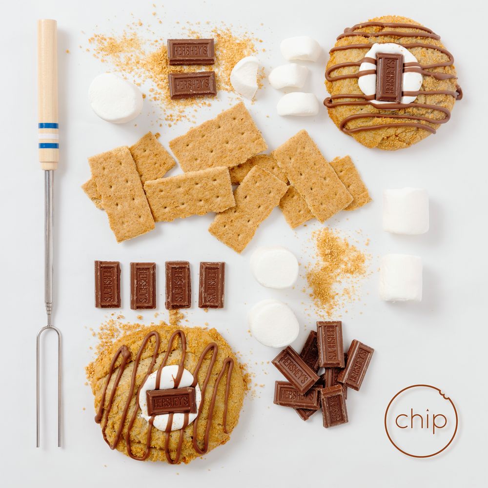 Four cookie mix of each of the following fan favorite custom chip cookies:- Better Than Sex Chip (BTS): a warm gourmet cookie made with a cocoa cookie, caramel, sweetened condensed milk and topped with whipped cream, toffee + caramel- tres leches chip: a warm gourmet buttery cookie infused with sweetened condensed milk and topped with whipped cream + cinnamon sugar - oreo dunk chip: a warm gourmet cocoa cookie infused with sweetened condensed milk and topped with white chocolate + crushed oreos - choconut chip: a warm gourmet OG cookie (chocolate chip) capped with milk chocolate and topped with toasted coconut + a chocolate drizzle